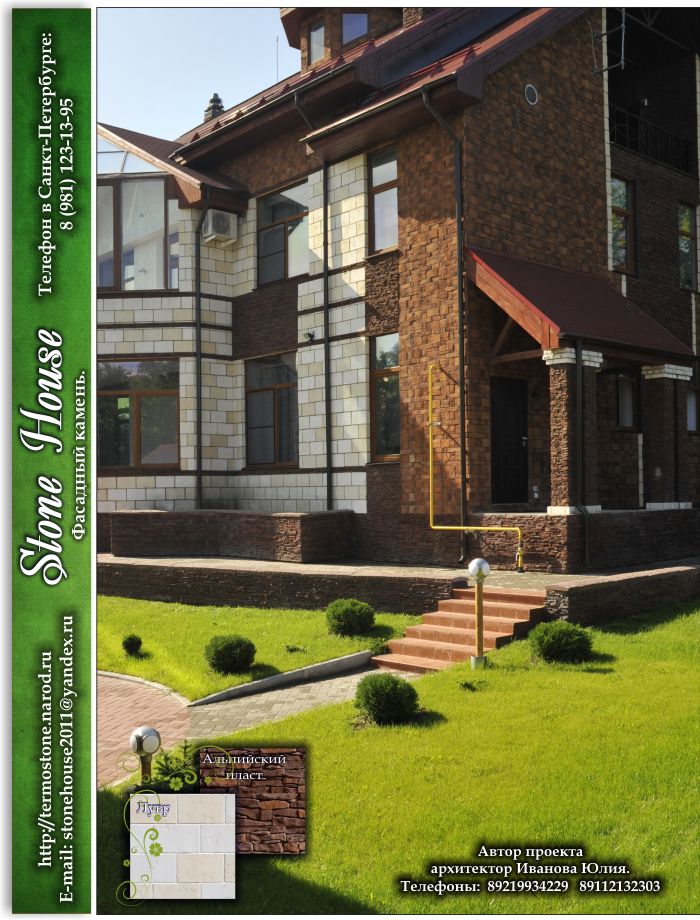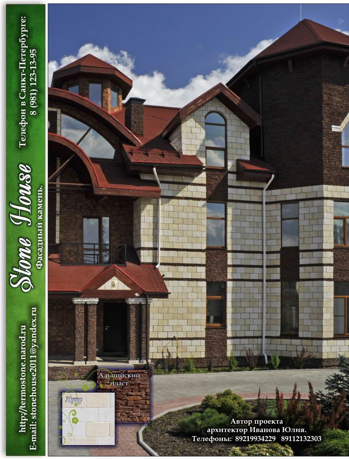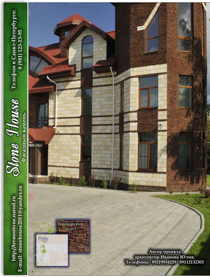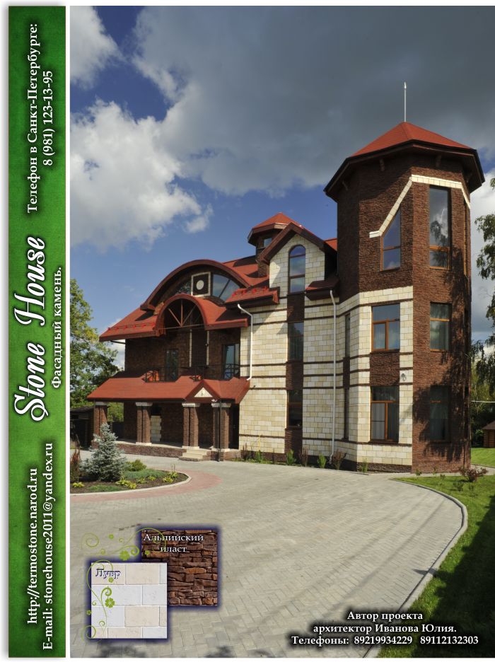 Фасад: Рижский клинкер. Цоколь: Дворцовый камень.