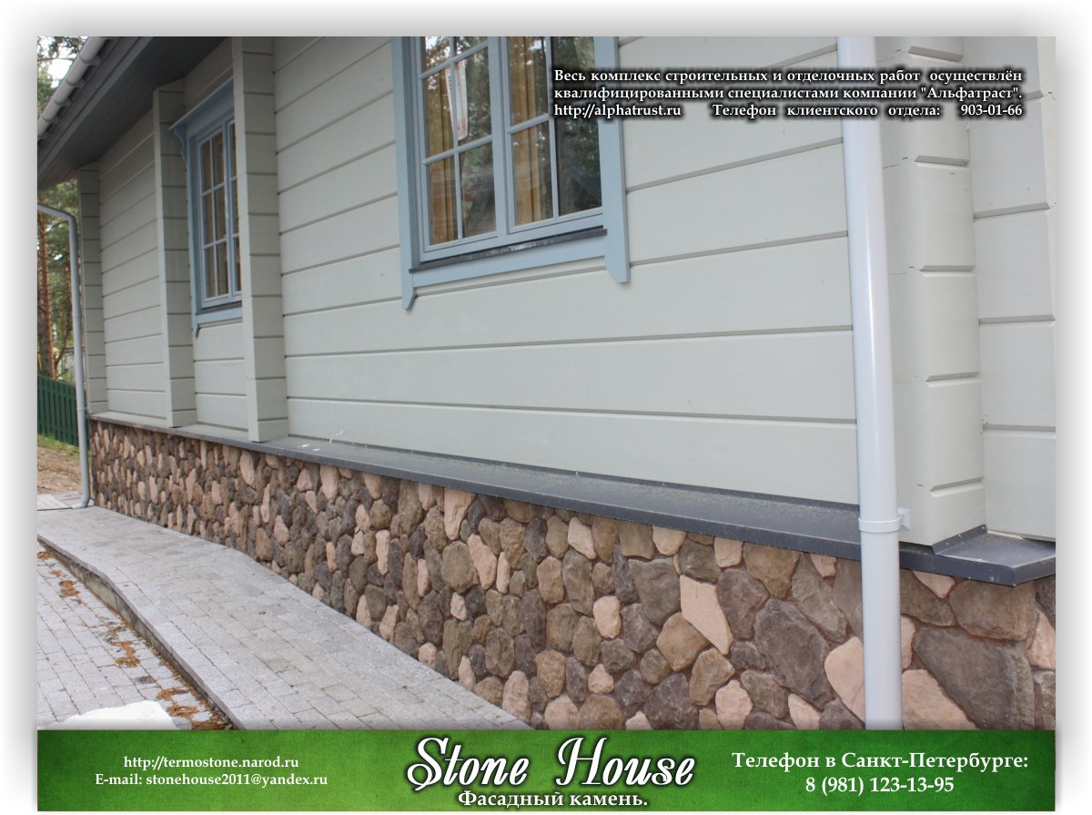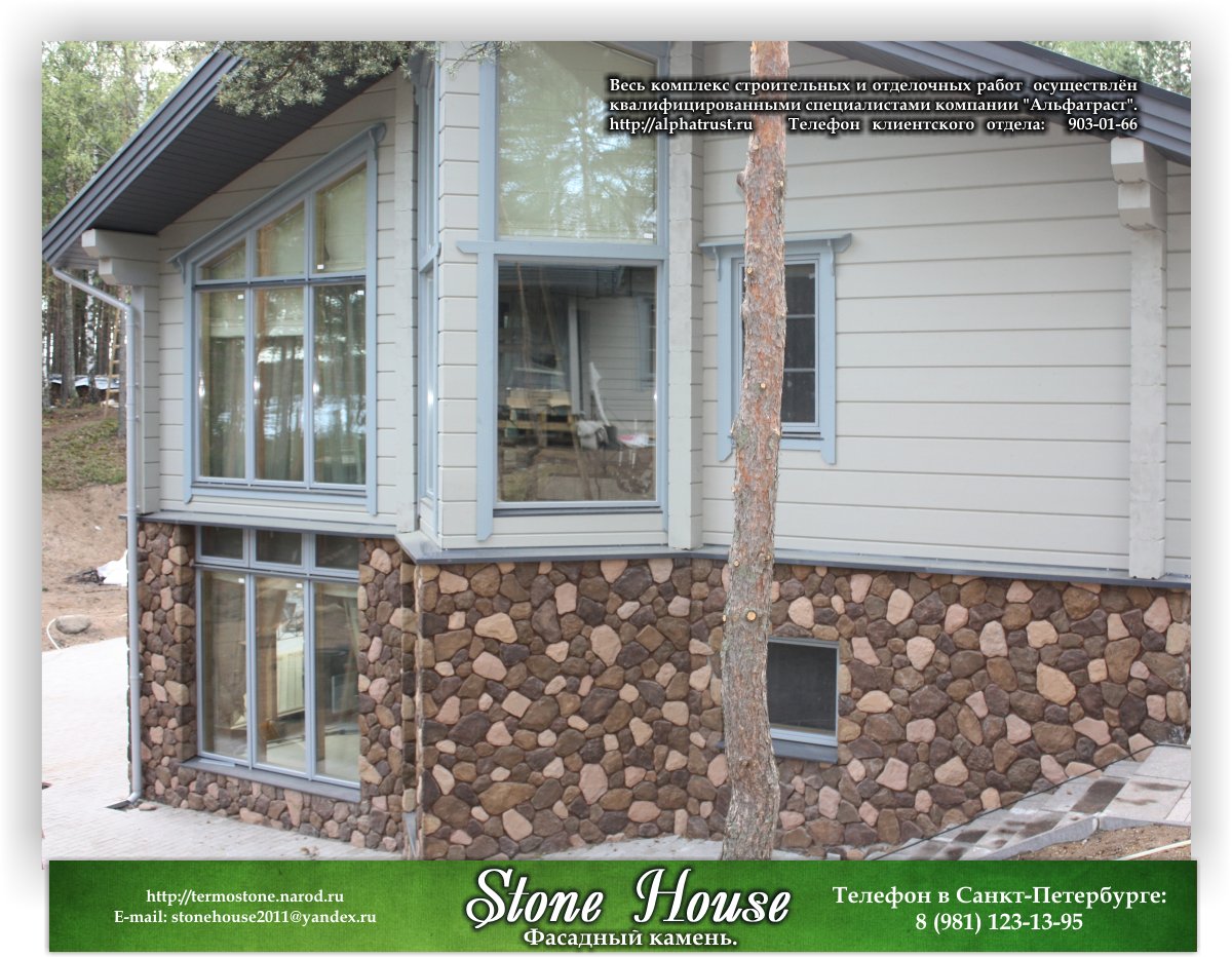 Посетители нашего сайта могут перейти в фотогаллерею "Облицовка цоколя декоративными камнями Бут, Выветренная скала". В этом разделе представлены загородные коттеджи премиум-класса, возведённые строительной компанией «Альфа Траст».