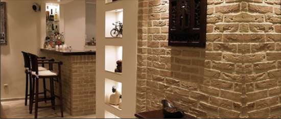 Возможности использования этого традиционного строительного материала весьма широки.Его всё чаще применяют не столько для отделки и облицовки фасадов, а как элемент украшения интерьера.